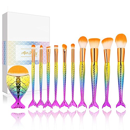 Apr.Fairy Mermaid Makeup Brushes Chubby Fish Foundation Brush Set with Box 11pcs Premium Synthetic Fiber Bristles Professional Kabuki Cosmetic Beauty...