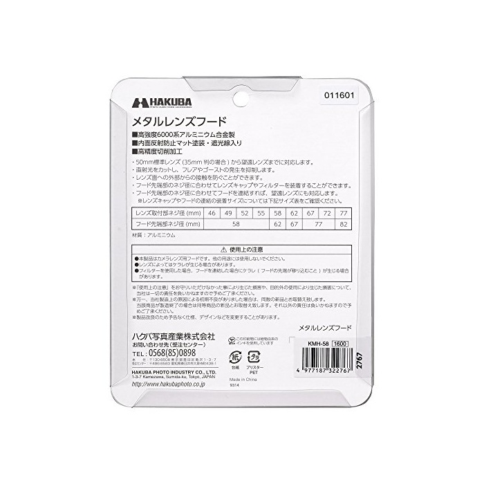 원본상품명: HAKUBA レンズフド メタルレンズフド 高度6000系アルミニウム合金製 ブラック