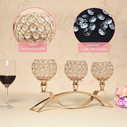VINCIGANT Gold Crystal Candle Holders,Wedding Centerpieces Candelabra,Tealight Candlestick Holder for Home Decorations,Wedding/ Birthday/ Halloween Gifts