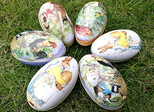 Winterworm 6pcs Creative Cute Tin Bunny Chick Printing Alloy Metal Easter Eggs Shaped Candy Box Holder