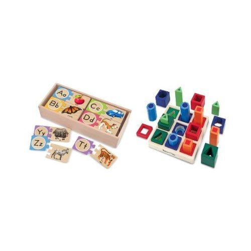 3 Item Bundle: Melissa & Doug 2541 Self-Correcting Alphabet Letter Puzzles and 582 Shape Sequence Sorting Set + Free Activity Book