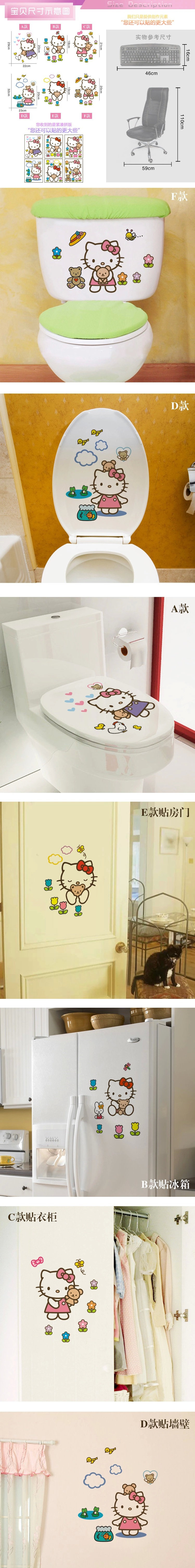 HELLO KITTY cartoon toilet waterproof stickers affixed green refrigerator door wardrobe cabinets wall-stickers stickers