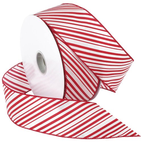 Morex Ribbon 2-1/2-Inch Wide by 50-Yard Spool Peppermint Stripe Wired Ribbon, Red/White