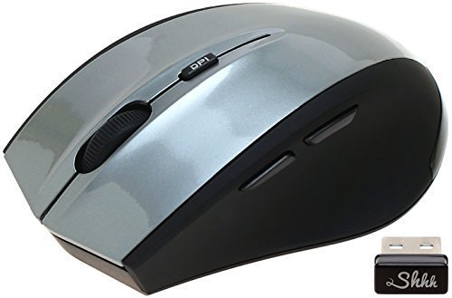 ShhhMouse Wireless Silent 5-Button Optical Mouse with 1000, 1200 and 1600 dpi switch, 90% Noise Reduction (Battery Included) (1 YEAR US WARRANTY) (Black)