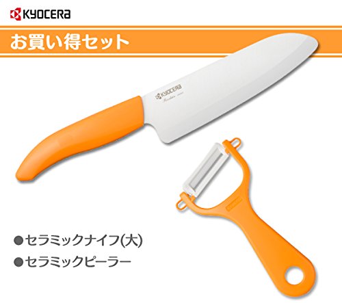 교세라(KYOCERA) 세라믹 부엌칼 나이프 (대)&세라믹 필러 감자칼 이득 세트 FKR-160-OR/CP-NA08OR 오렌지