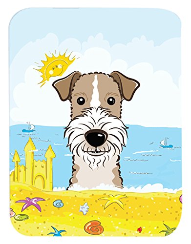 Caroline's Treasures BB2115LCB "Wire Haired Fox Terrier Summer Beach" Glass Cutting Board, Large, Multicolor