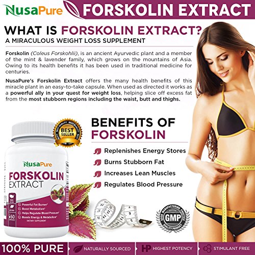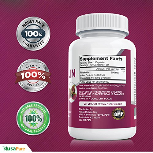 -. Binding : Health and Beauty -. Brand : NusaPure -. EAN : 0646437393331 -. Feature : POTENT FORSKOLIN EXTRACT FOR WEIGHT LOSS - Look great and feel great! Get better weight loss results with our Pure Forskolin supplement. No unwanted side effects / 2X STRENGTH OF FORSKOLIN 125MG - Most Forskolin Supplements are only 125mg: NusaPure Forskolin Pure is TWICE the strength with 250mg per capsule for maximum results! / FORSKOLIN BELLY BUSTER FOR WOMEN AND WOMEN - Forskolin Pure extract is THE best belly buster for women and men! Guaranteed. / HIGHEST PURITY FORMULA MADE IN THE USA - We guarantee this is the purest grade Forskolin made in the USA in a facility following strict Good Manufacturing Practices. Each batch is quality tested - so you get the highest quality Forskolin available! / 100% RISK-FREE GUARANTEE - Try Forskolin completely risk free. If you are not satisfied with the results of NusaPure's Forskolin you can get a complete refund. Click Add to Cart to try Forskolin -. IsAdultProduct : 0 -. Label : NusaPure -. LegalDisclaimer : These statements have not been evaluated by the FDA. This product is not intended to diagnose, treat, cure, or prevent any disease. -. Manufacturer : NusaPure -. PackageQuantity : 1 -. ProductGroup : Health and Beauty -. ProductTypeName : HEALTH_PERSONAL_CARE -. Publisher : NusaPure -. Size : 1 Bottle -. Studio : NusaPure -. Title : Forskolin Extract for Weight Loss: Pure Forskolin Extract: 2x Strength of Forskolin 125mg: Forskolin Belly Buster for Women and Men: Best Forskolin Extract Available: 60 Caps -. UPC : 646437393331