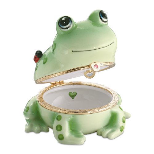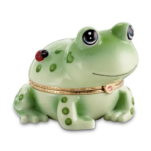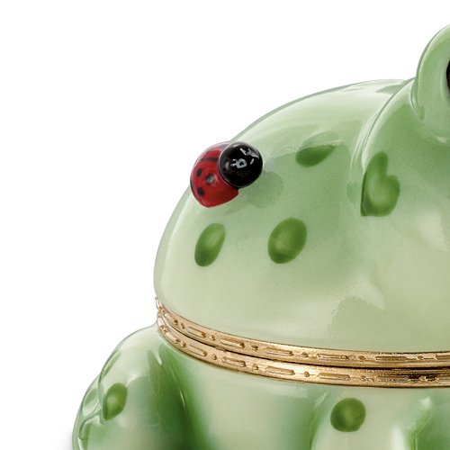 Feature : Keep your dreams alive with this Animoges market first frog Heirloom Porcelain® music box, available only from The Bradford Exchange / Exquisitely handcrafted in glazed and triple-fired Heirloom Porcelain, this frog-themed collectible opens on a classic Limoges-style hinge set with a sparkling Swarovski crystal / A sweet ladybug friend rests on the adorable frog's back / For added delight, the uplifting melody, "It's Not Easy Bein' Green" plays at the turn of a key / Includes the Animoges signature - a green heart, ensuring your collectible is an original Animoges music box of endearing value
