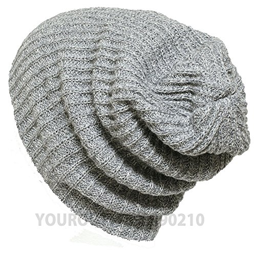 -. Title : Men's Women's Crochet Knit Heavy Oversize Baggy Beanie Slouch Unisex Ski Cap (Heather Grey)