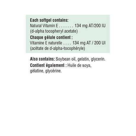 Vitamin E 200 IU-100 soft gel Brand: Jamieson Laboratories