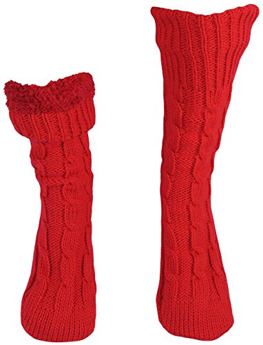 -. Binding : Apparel -. Brand : N'Ice Caps -. Department : womens -. Feature : Chain link cable knit design / Soft and bulky sherpa lining for added warmth / One size recommended for women's sock size 9-11 / Non-skid gripper on soles / Sock can be pulled up to high ankle, cuff can fold down -. ProductGroup : Apparel -. ProductTypeName : SOCKSHOSIERY -. Title : N'Ice Caps Women's Lined Cable Knit Home Sock with Non-Skid Gripper Soles