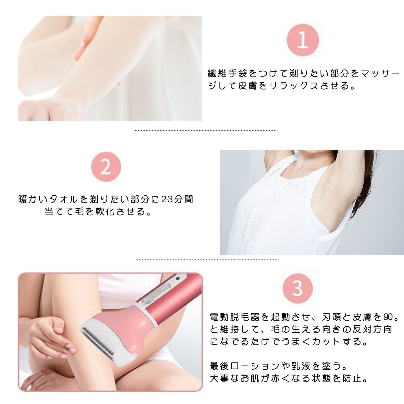 Short hair will remain at this time So use 2 to 3 mesh blades, do not shave repeatedly in the same place, you must shave at 70 ° in the opposite direction where the hair will live, and shave