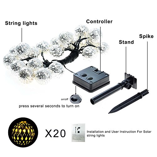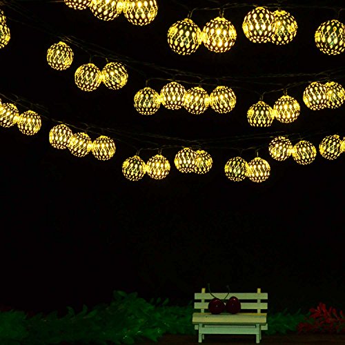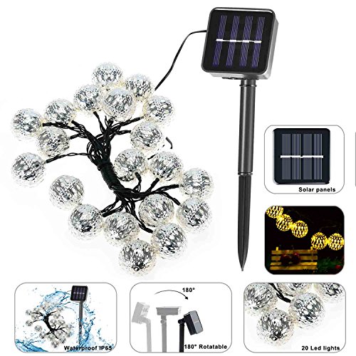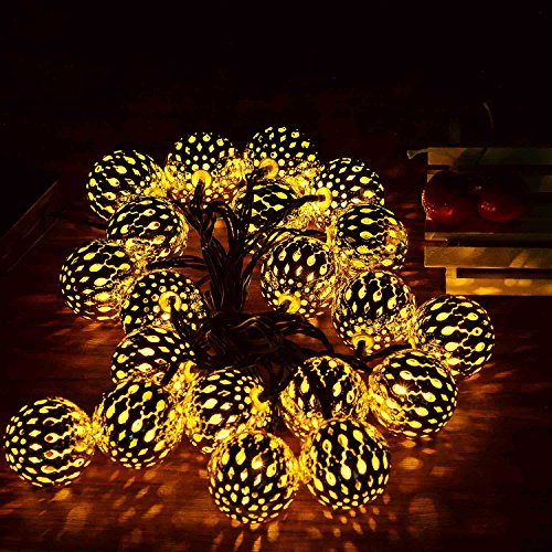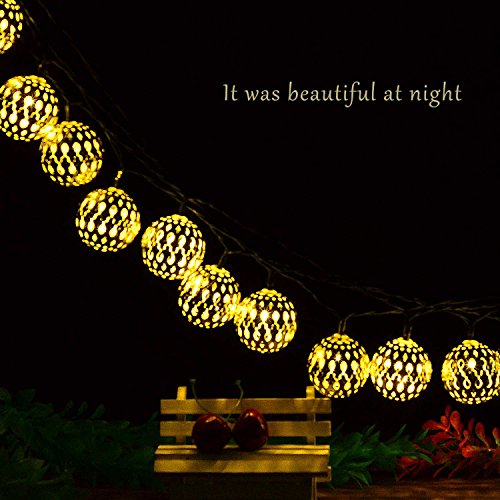 - VARIOUS APPLICATION: The solar warm white Moroccan ball sting lights are great decorations for Outdoor, Garden, Patio, Yard, Home, Landscape, Pathway, Path, Lawn, Fence, Christmas, Xmas Tree, Halloween Holiday Party. This charming ambiance lighting can create a warm and romantic atmosphere for your house