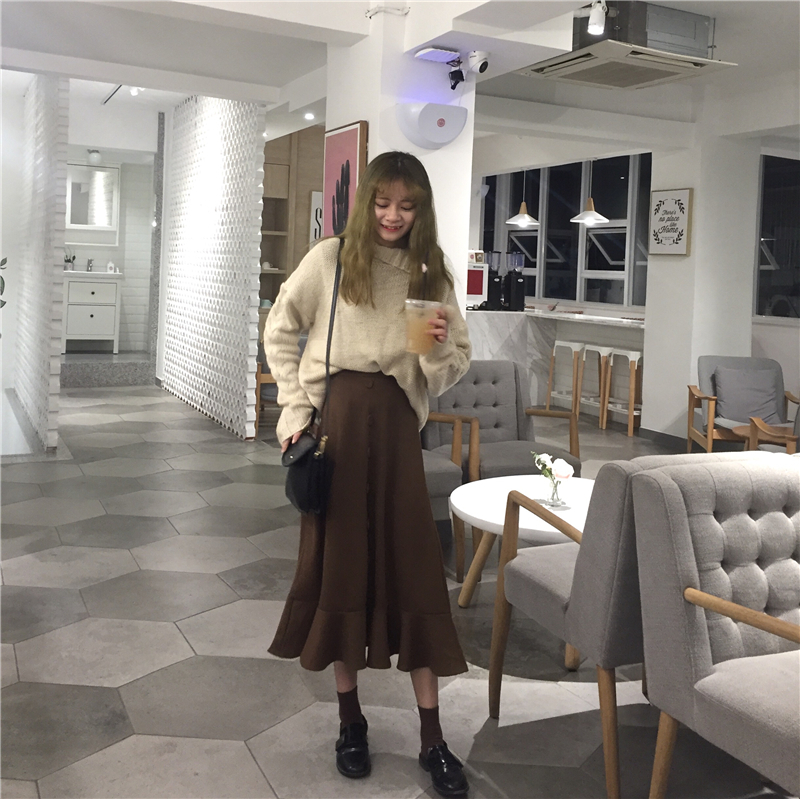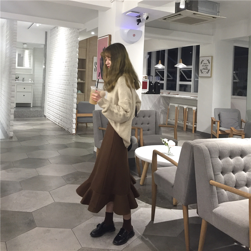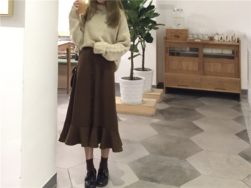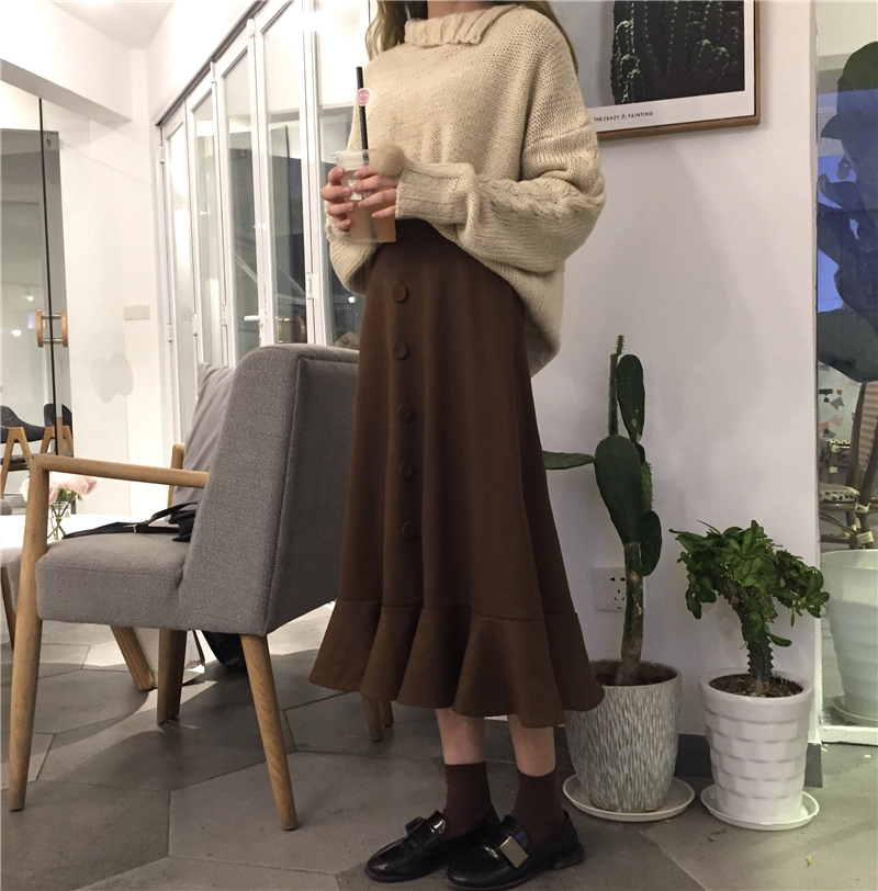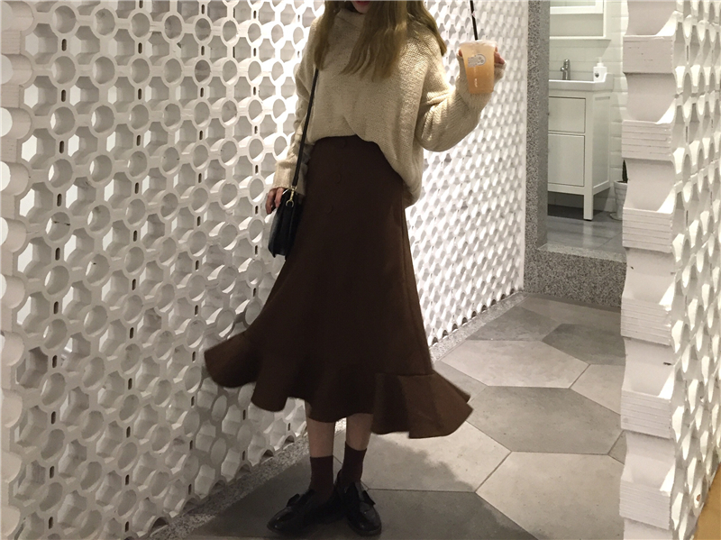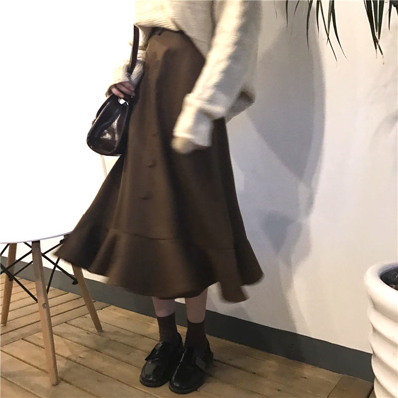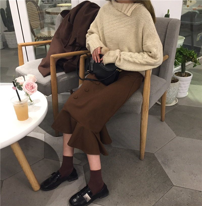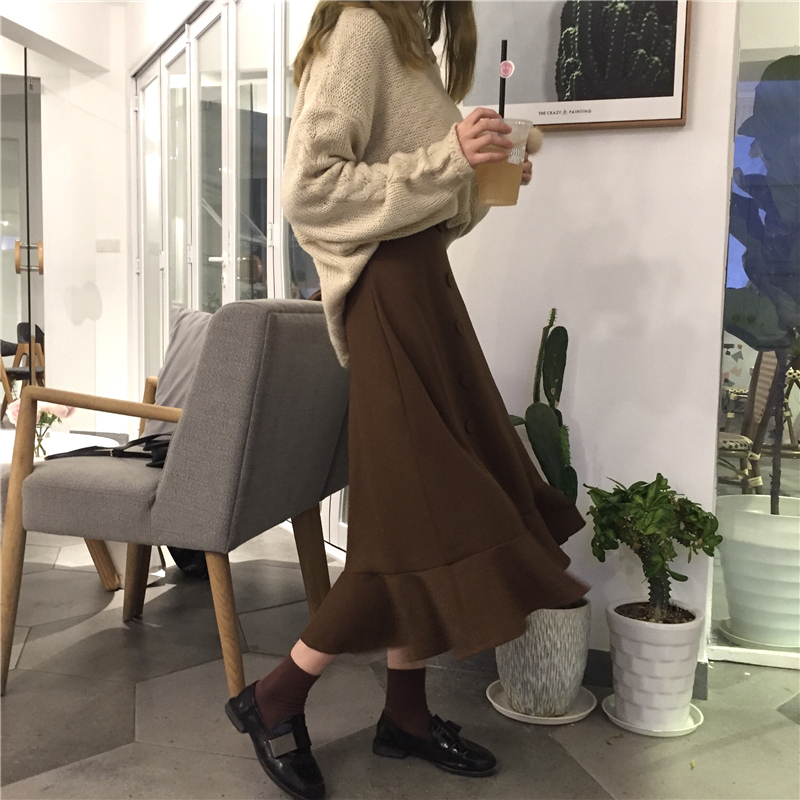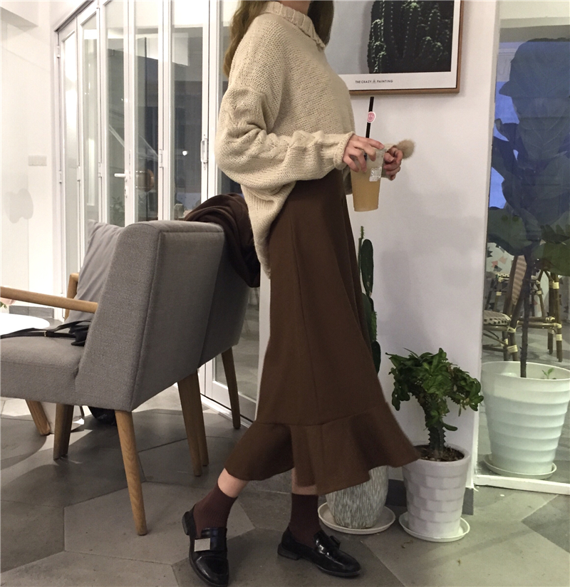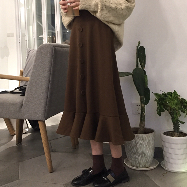落ち着いたカラーが大人っぽい雰囲気のロング丈マーメイドスカートです。