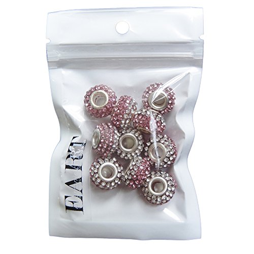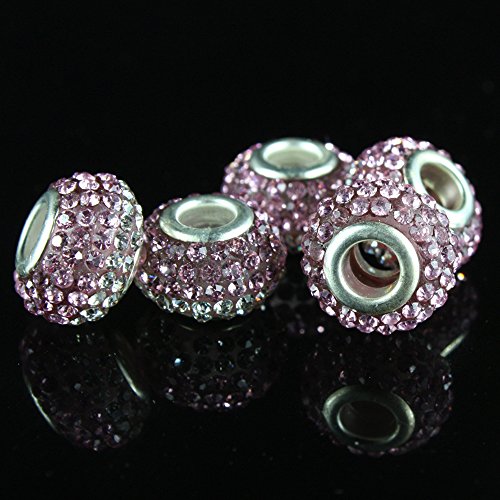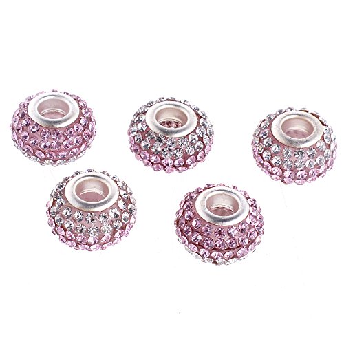RUBYCA Big Hole Czech Crystal Large Charm Beads fit European Bracelet (5pcs, 15mm, Pink and White)
