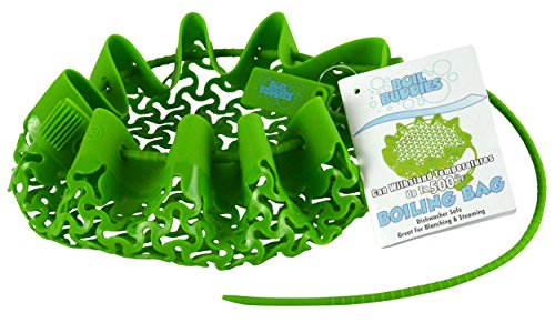 This Boil Buddies by Southern Homewares brand Silicone bag makes an excellent addition to any kitchen arsenal. Simply place the desired food in the Boil Buddies Boiling Bag and pull the draw string tight. Then place the bag and it's contents in the pot of boiling water and cook till done. Once the food has cooked the perfect amount, easily remove the bag by the drawstring and you're done! We suggest using pot holders to remove the bag and watch out for hot steam! Bag is green in color. When laid out completely flat the bag has a 12" diameter.Feature