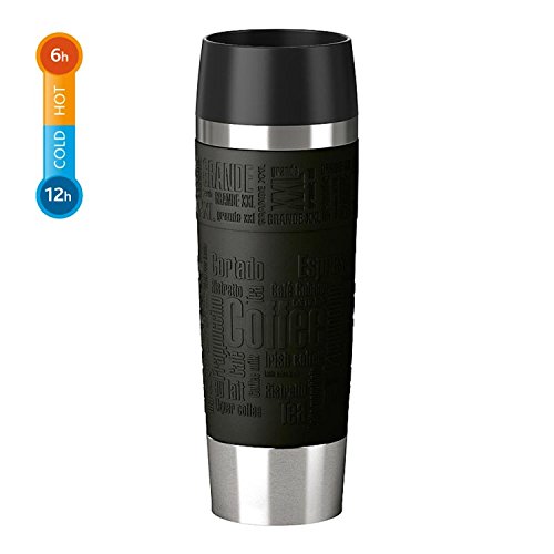 EMSA Germany: Travel Mug Grande - Premium High Performance German Engineered Thermos Vacuum Flask Tumbler, 17oz, Black