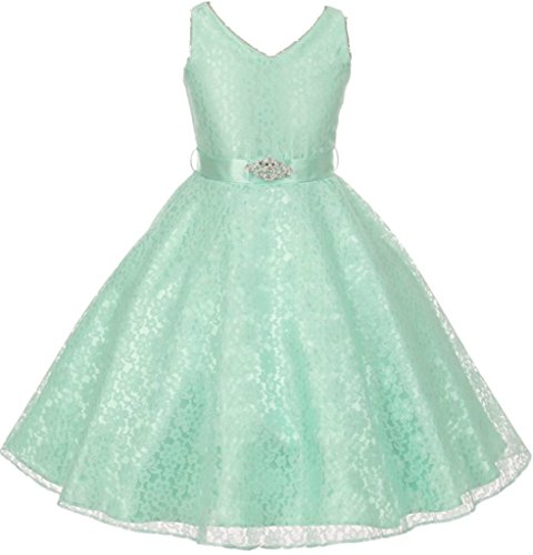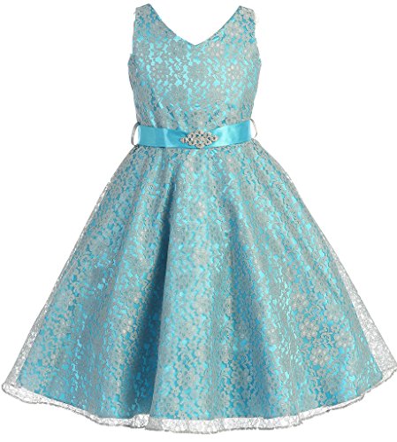 AkiDress Lace Floral Pattern Flower Girl Dress for Big Girl Turquoise 16 G35.11G