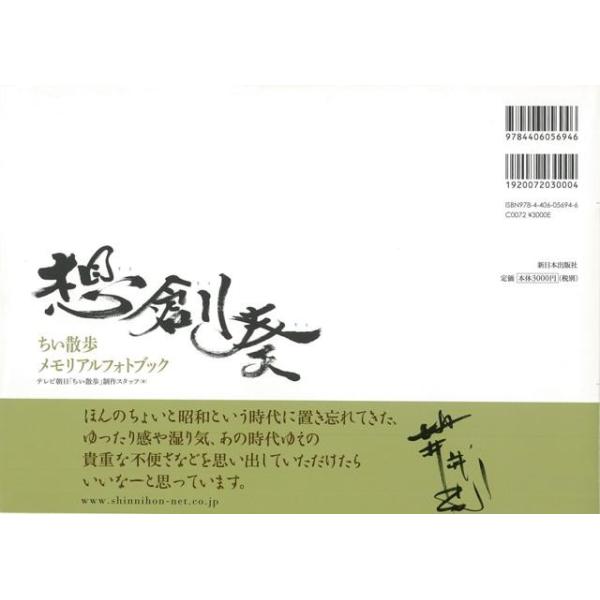 【商品基本情報】 商品名称:想創奏-ちい散歩メモリアルフォトブック 著者/出版社:テレビ朝日ちい散歩制作スタッフ/テレビ朝日ちい散歩制作スタッフ 初版発行日:2013/06/29 サイズ:B5判 ページ数:1 ISBN/JAN:9784406056946/4528189446700