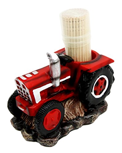 Old Fashioned Red Country Farm Tractor Decorative Toothpick Holder Figurine With Toothpicks