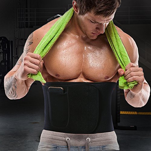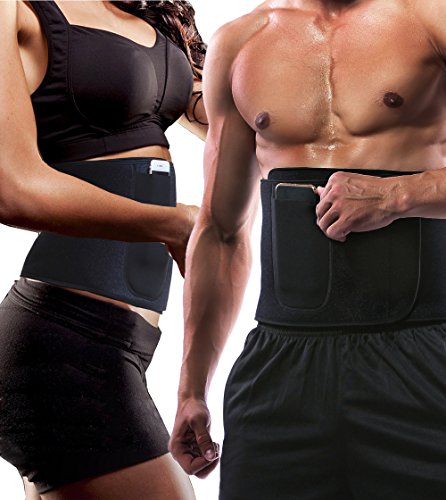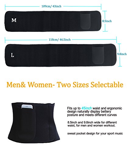 Manladi Men&Women Waist Trimmer Anti-Pilling Neoprene Sweat AB Belt for Weight Loss includes Resistant Smartphone Pocket for iPhone 8 and iPhone 8 Plus Medium: 8.5" Wide x 43" Length fits waist 25" - 42" Large: 9.8" Wide x 46.5" Length fits waist 28"- 45"