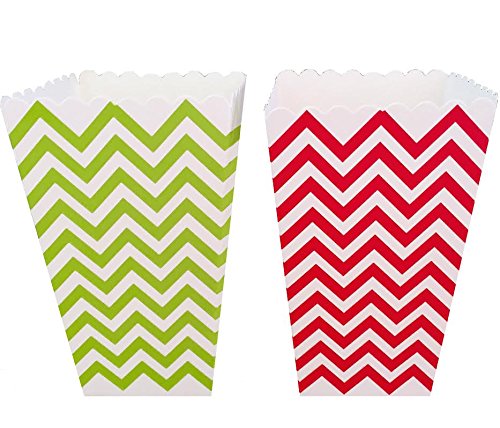 Christmas Popcorn Treat Boxes - Red, Green Chevron Pattern - 24 Pack