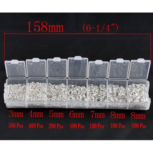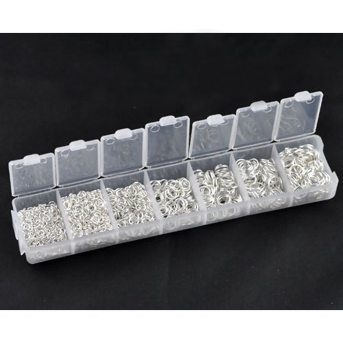1500 Pc Open Jump Rings, DIY Jewelry Making & Findings in Organizer (Silver Tone 3-8mm)