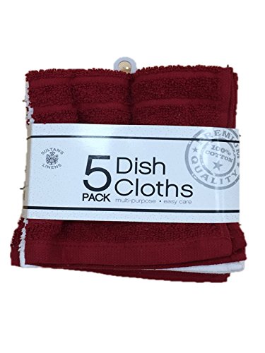 -. Title : Dish Cloths 100% Cotton 5 Pack Premium Quality Easy Care Multi Purpose By Sultan's Linens