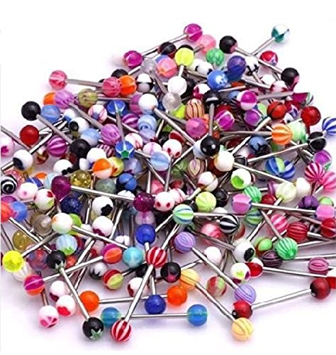 CrazyPiercing Wholesale Lot of 110pcs 14g Tongue Rings Barbells Assorted Colors