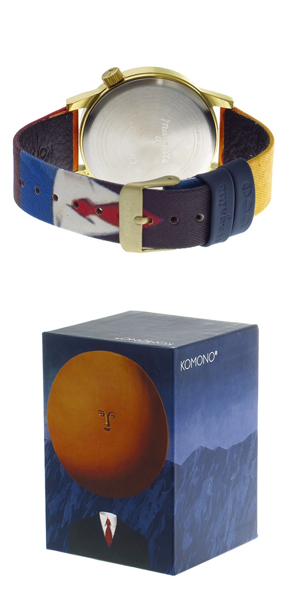 ブランドネームは世界中の「小物」を意味するワードの中から、日本語の「小物」選ばれて名づけられました。2009年、ベルギーのアントワープで生まれた、デザイナーのラフ・マエス氏とアントン・ヤンセンス氏による、腕時計とアイウェアをメインとするアクセサリーブランドです。この時計は、ベルギーのシュールレアリスムの画家で、のちのポップアートにも多大な影響を与えたR・マグリットの代表作をデザインに使用したコラボウォッチ。アートを身に着けられる逸品です。