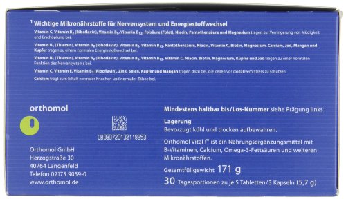 Orthomol Vital f™ ist ein Nahrungsergänzungsmittel. Wichtige Mikronährstoffe für Nervensystem und Energiestoffwechsel. Mit Magnesium und B-Vitaminen zur Verringerung von Müdigkeit und Erschöpfung. Mit Omega-3-Fettsäuren und Calcium.