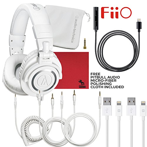 -. Title : Audio-Technica ATH-M50x Headphones White With iPhone Fiio i1 DAC Headphone Amp, MonoP.R.Ice 6’ MFI Lighting Cables and Polishing Cloth