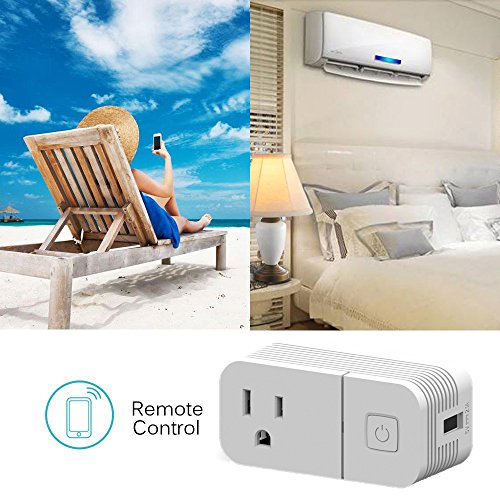 Mini Smart Wifi Plug ,Greewo Wifi Outlet ,Work with Amazon Alexa & Google Home, APP Control from Anywhere,Timing Function with USB Port 2.1A