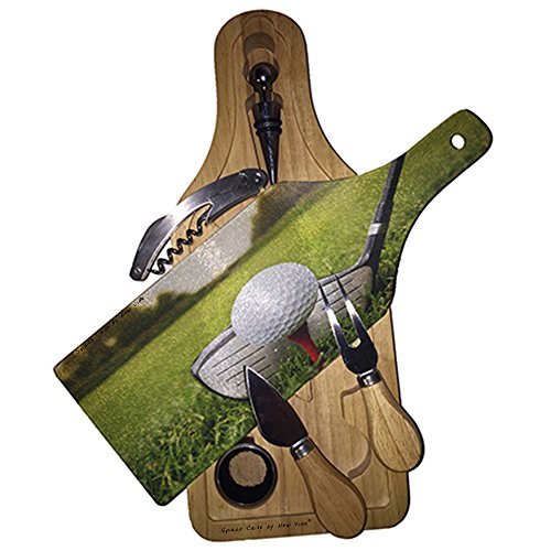 Space Case 골프의 그린 와인&치즈 세트 유리 커팅 도마 보드