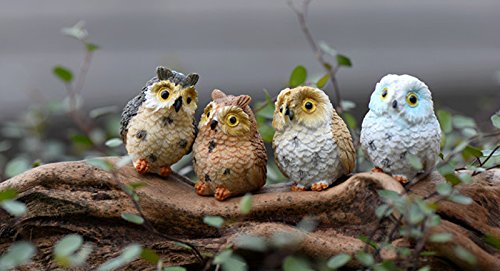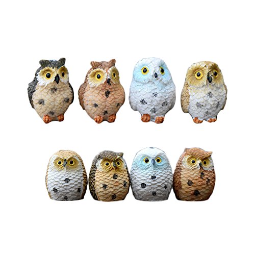 Miraclekoo 8 Piece Miniature Fairy Garden Owl Ornament Dollhouse Plant Pot DIY Decor Home Decoration