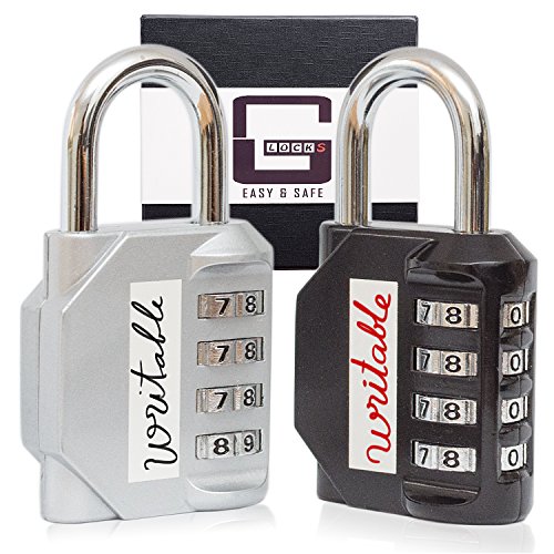 Writable Padlock / Locker Lock for Gym ( 2 Pack ) in GIFT BOX by G-Locks | Resettable 4 digit Combination Lock + eBook with Security Tips. You also can use for School , Toolbox , Case , Hasp Storage