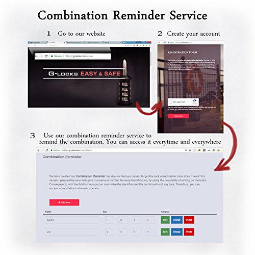 - A GREAT GIFT FOR YOUR LOVED ONES' PEACE OF MIND: Premium packaged, the two assorted locks by G-Locks are the perfect gift for people who want to protect their valuables. Use the included reminder cards or the Combination reminder service on our website to write down your password. In sleek black and elegant silver for him and her, the locks are easily distinguished from one another.