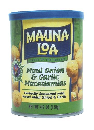 -. Feature : Roasted macadamia nuts coated with garlic and sweet Maui onion / Add a taste of the tropics to snacking, baking, and cooking. / An all-natural snack / Garlic and onion macadamia nuts / Includes 4 resealable canisters of Mauna Loa Maui Onion and Garlic Macadamia Nuts (4.5-Ounce Canisters)