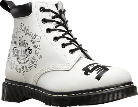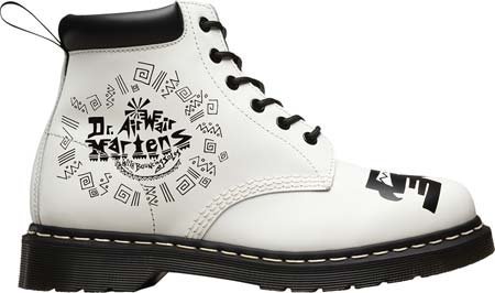 Studio : Dr. Martens Publisher : Dr. Martens Binding : Apparel Product Description We're all about self expression and pioneering creativity, which is why we teamed up with illustrator Mark Wigan this season. In the 1980s he worked as a prominent illustrator for magazines like i:D and NME and could be found regularly photographing people on the New York club scene. One of the original styles that was produced in the Cobbs Lane factory, and appeared in the very first advertisement that the Griggs Group produced. Updated this season borrowing from the buffalo style era and features Mark's signature style paired with our super durable air cushion sole. This season, say it with your feet. 0