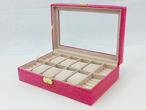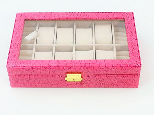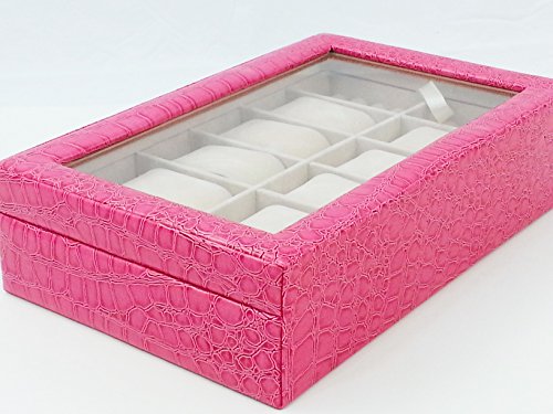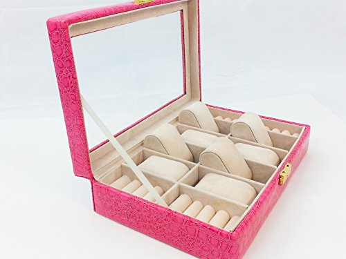 -. Title : Pink 8 Slot Pillow Leather Watch Jewelry Earring Bracelet Box Storage Organizer