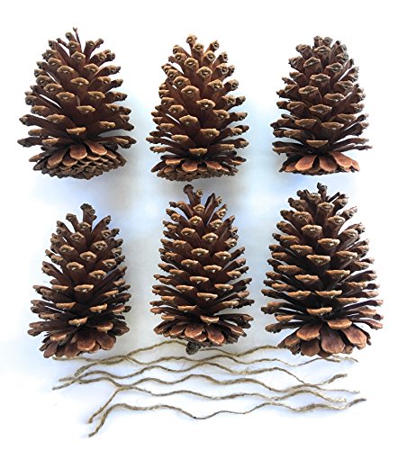 6 Large Freshly Harvested Premium Pincones (4-6inches) bundled with Jute Twine for Hanging