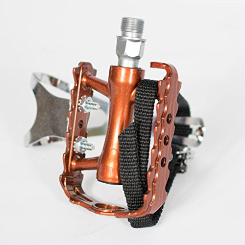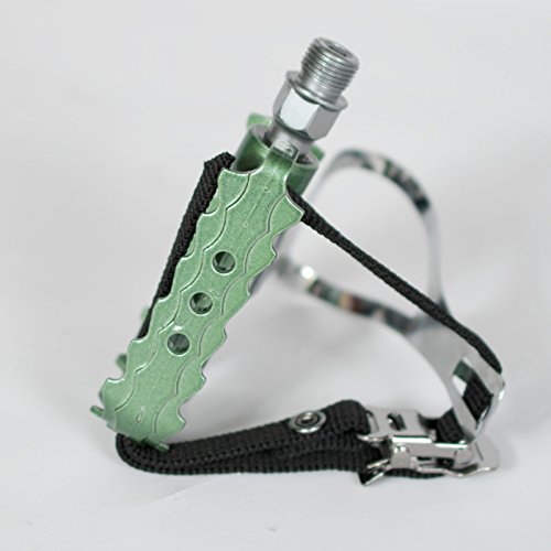 Fixie Bike Pedals with Metal Toe Clips and Strap – aluminum construction with cromoly axle (9/16”)