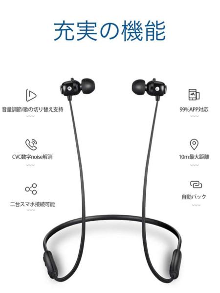 【軽量&快適&マグネット内蔵】やわらかいイヤーチップに柔軟なイヤーフックが、運動中の激しい動きでも快適で外れることがありません。付属の調整用イヤーチップとイヤーフックによって、自分にぴったりのフィット感を見つけられます。左右のイヤホンヘッドをくっつけ、首から下げることで紛失や落下を防ぎます。使用していない場合は、イヤホンを輪にして首に掛けられます。