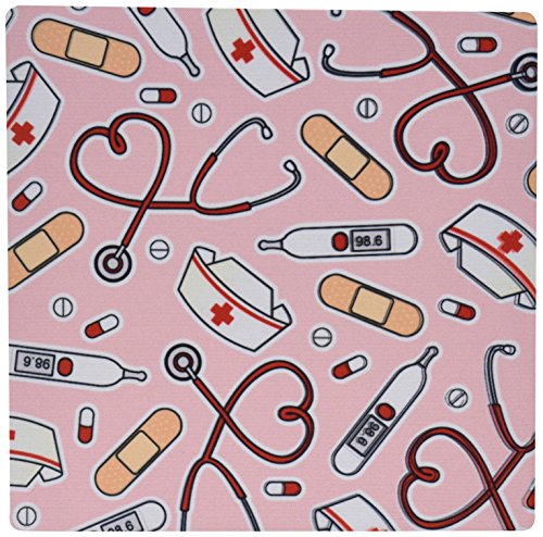 3dRose LLC 8 x 8 x 0.25 Inches Mouse Pad, Nurse Love Cute Cartoon Rn Supplies Print Pink (mp_128493_1)