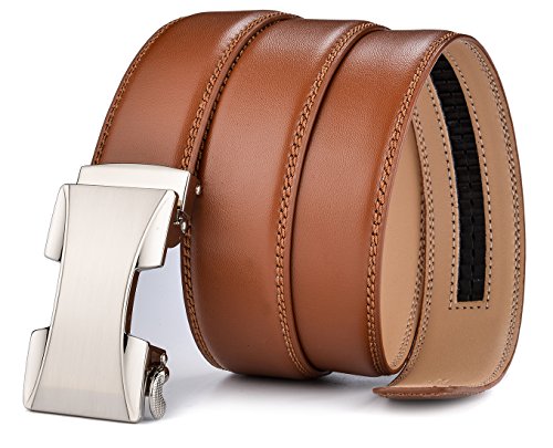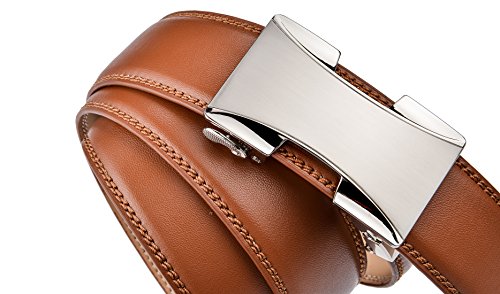 ✔ 100% TAN LEATHER BELT. Double edge stitching strap with automatic buckle for durability and strength.