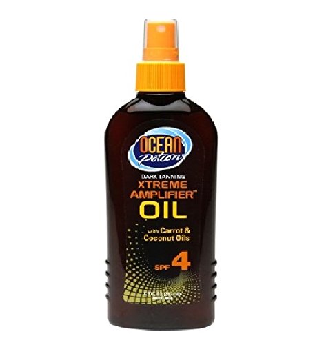 Ocean Potion® Dark Tanning Xtreme Amplifier Oil SPF 4 is an accelerator formula that provides moderate sunscreen protection while sun tanning. Carrots & coconut oils help increase melanin production which elevates the skin's tanning plateau. This formula amplifies the sun's most intense tanning rays for extreme tanning.