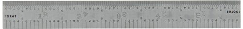 Fowler 52-340-006 Rigid Steel Rule with Satin Chrome Finish, 5R Graduation Interval, 6" L x 0.75" W x 0.04" Thick