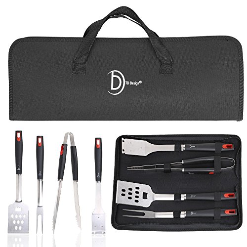 TD Design BBQ Grill Set with 4 Barbecue Accessories-Grilling Utensils,Grill Spatula, Barbecue Tongs, BBQ Fork,Cleaning Brush and Carry Case
