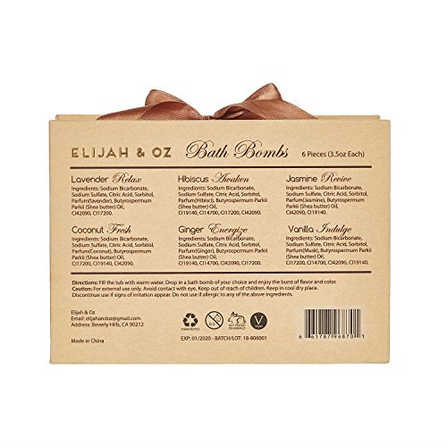 -. Title : Elijah & Oz Bath Bombs Gift Set - Handmade Spa Fizzies for Relaxation & Aromatherapy - With Organic, Natural Essential Oils and Shea Butter - Vegan & Cruelty-Free (Set of 6), Luxury Bath Bomb