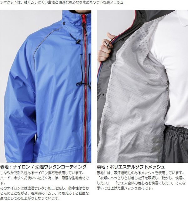 ●カラーは全部で3色。別売りで、ジャケットとは異なる素材を採用したレインパンツ 雨先案内人レインパンツがございます。是非、組み合わせてご使用ください。